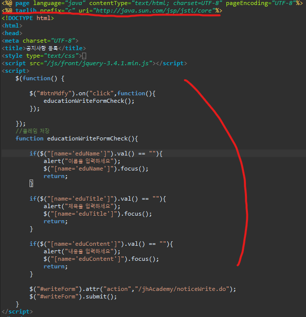 그리고 그 밑은 등록할때 validation 체크 스크립트 부분이다.