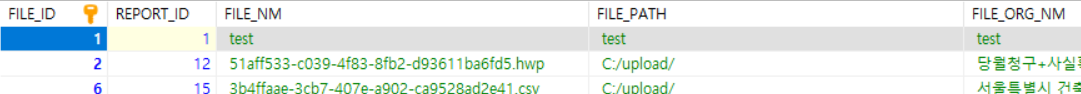 디비를 확인해보면 업로드한 파일이 잘 들어간것을 확일할 수 있다~!